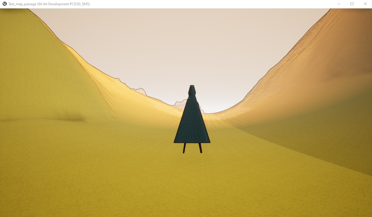 Early in the development an emphasis on the linear game world and dynamic weather has been established. The use of Skull.nz cell shader has provided the visual aesthetic for Passage and development of rain, snow and wind environmental systems are in construction.