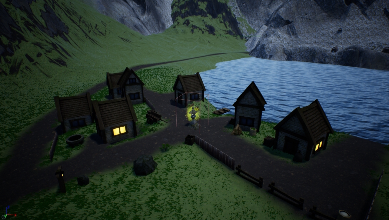 This second village I created to host the second orb. This has the same assets as the first village with the addition of some of Alex's assets such as the fences.