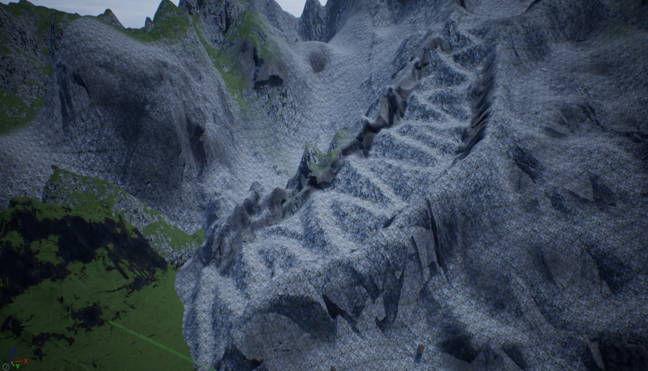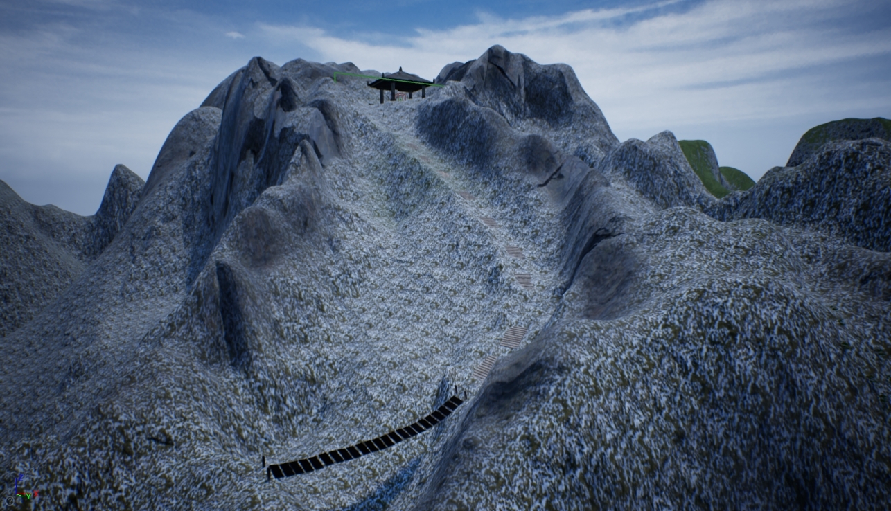 I have added A bridge Alex has made along with some Megascans steps assets to visually assist the player up the final stages of the mountain.