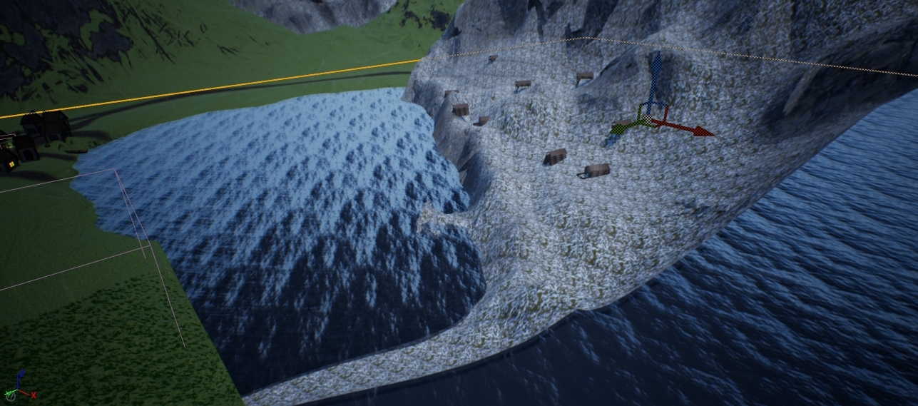Another collision plane was added underneath the water so the player cannot pass through and sink to the bottom of the lake.
