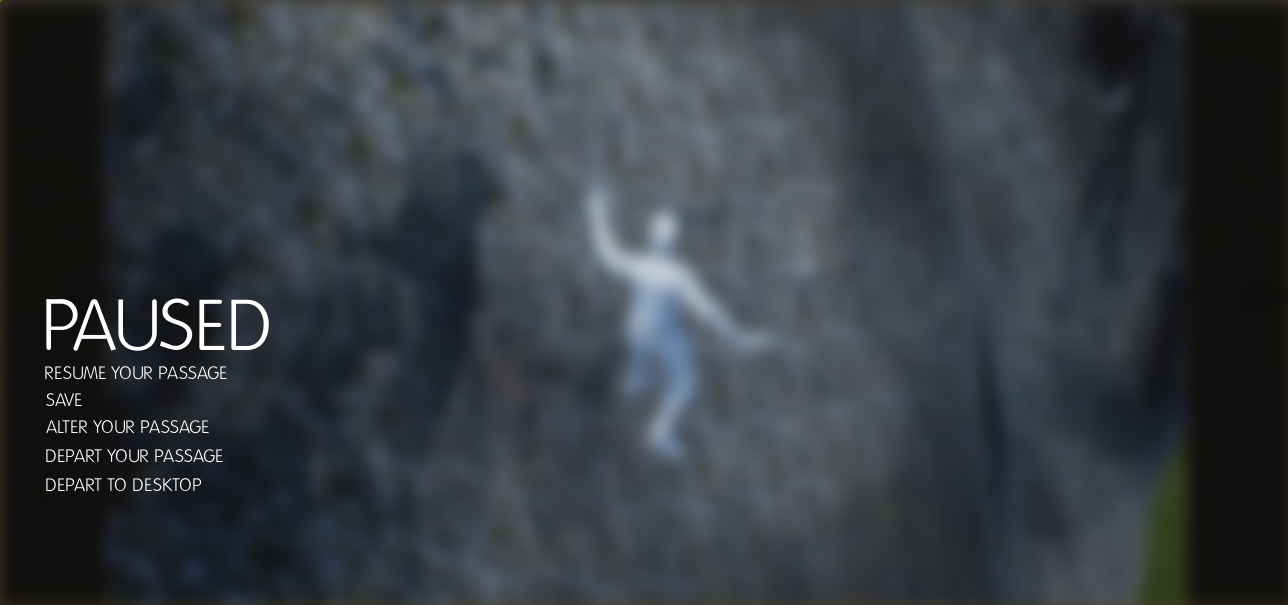 Passage is a 3D indie adventure game where the player explores a linear, dynamically weathered world. The player is taken through a passage coming across many different towns, ruins and monuments in search of glowing orbs, gathering information in search of the sacred temple. The world is unique in that the weather drastically changes and the player must find a way to combat varying conditions. Passage lets the player take a journey that is focused on story, dictated by the weather.