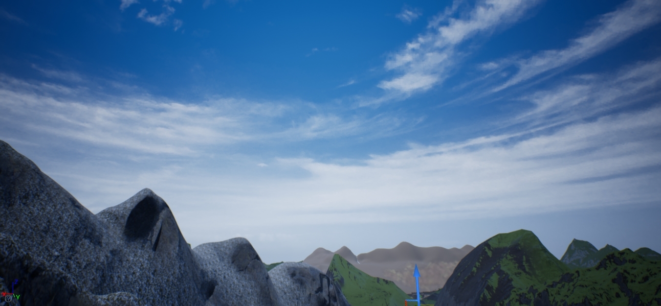 For the final mountain, up the the temple, I have sculpted a path most of the way up. At the beginning of the arguably long and hard journey up the mountain I have added Melina's snow particle system. This adds another layer of visual aesthetic and realism to environment. I have further go into the material blend and painted the rock texture of parts of the mountain that matches what a mountain would be most characterized as visually.